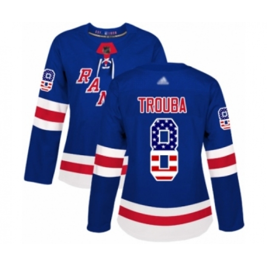 >Women's New York Rangers #8 Jacob Trouba Authentic Royal Blue USA Flag Fashion Hockey Jersey
