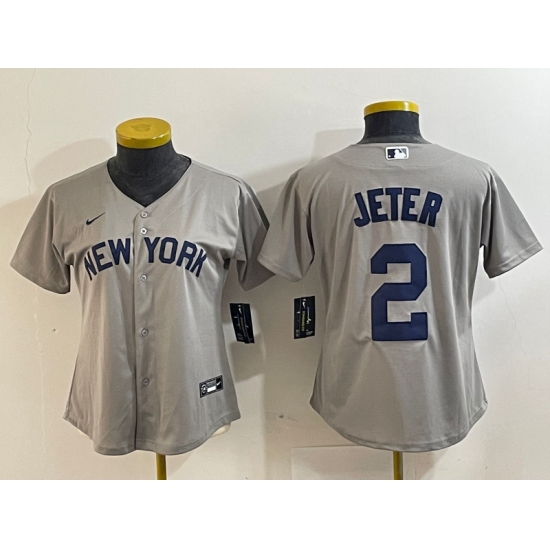 >Women's New York Yankees #2 Derek Jeter Name 2021 Grey Field of Dreams Cool Base Stitched Jersey