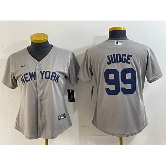 Women's New York Yankees #99 Aaron Judge Name 2021 Grey Field of Dreams Cool Base Stitched Jersey