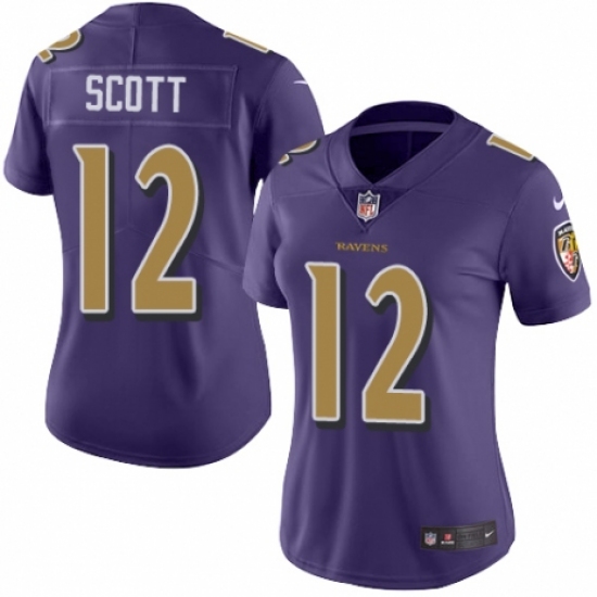 Women's Nike Baltimore Ravens #12 Jaleel Scott Limited Purple Rush Vapor Untouchable NFL Jersey