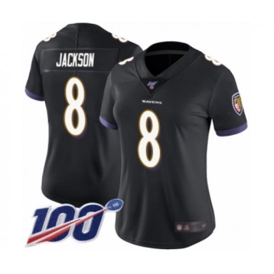 Women's Nike Baltimore Ravens #8 Lamar Jackson Black Alternate Vapor Untouchable Limited Player 100th Season NFL Jersey
