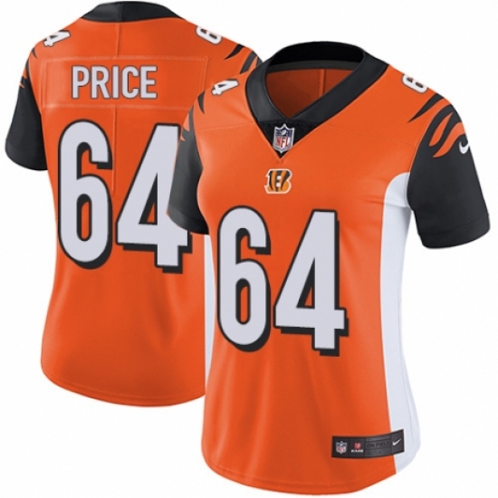 >Women's Nike Cincinnati Bengals #64 Billy Price Orange Alternate Vapor Untouchable Limited Player NFL Jersey