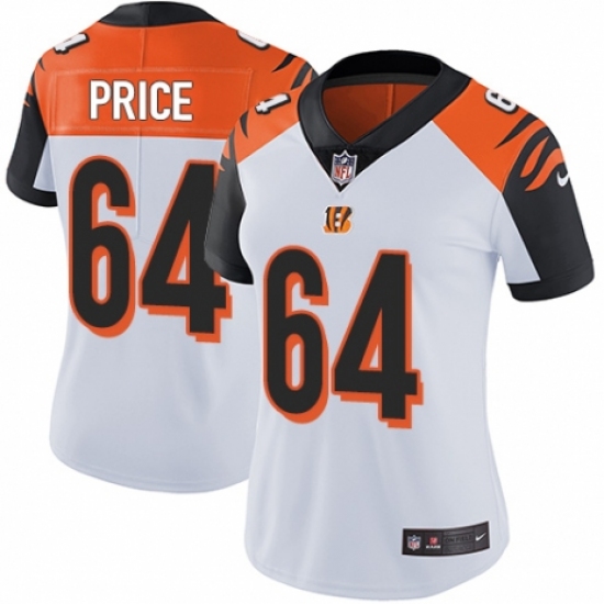 >Women's Nike Cincinnati Bengals #64 Billy Price White Vapor Untouchable Limited Player NFL Jersey