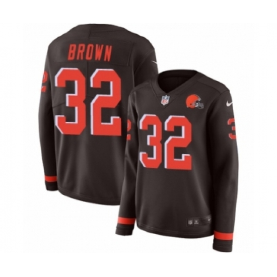 >Women's Nike Cleveland Browns #32 Jim Brown Limited Brown Therma Long Sleeve NFL Jersey