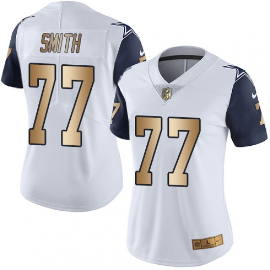 Home>NFL>Dallas Cowboys>Tyron Smith>Women's Nike Dallas Cowboys #77 Tyron Smith Limited White/Gold Rush NFL Jersey