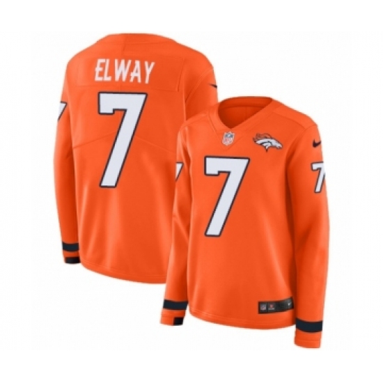 Women's Nike Denver Broncos #7 John Elway Limited Orange Therma Long Sleeve NFL Jersey