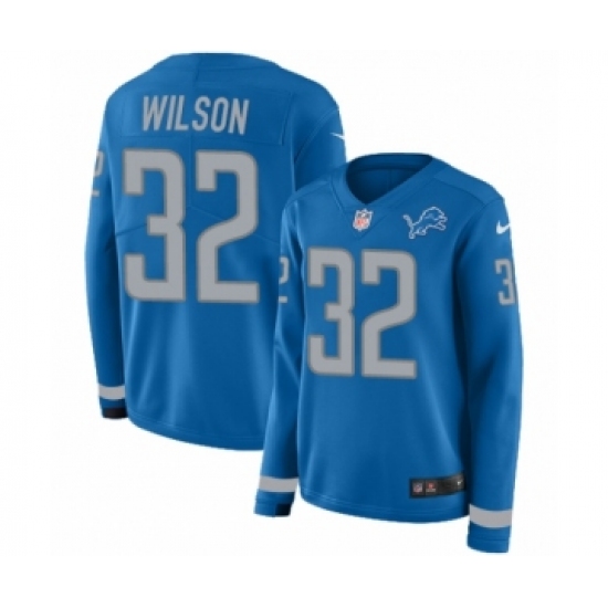 >Women's Nike Detroit Lions #32 Tavon Wilson Limited Blue Therma Long Sleeve NFL Jersey