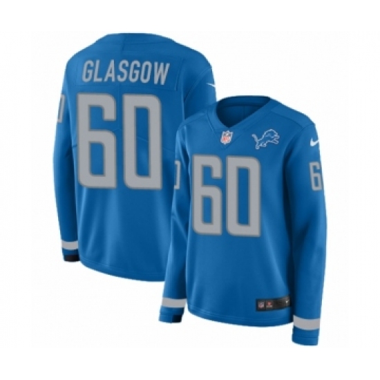Women's Nike Detroit Lions #60 Graham Glasgow Limited Blue Therma Long Sleeve NFL Jersey