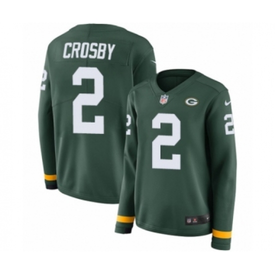Women's Nike Green Bay Packers #2 Mason Crosby Limited Green Therma Long Sleeve NFL Jersey