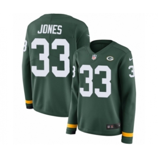 Women's Nike Green Bay Packers #33 Aaron Jones Limited Green Therma Long Sleeve NFL Jersey