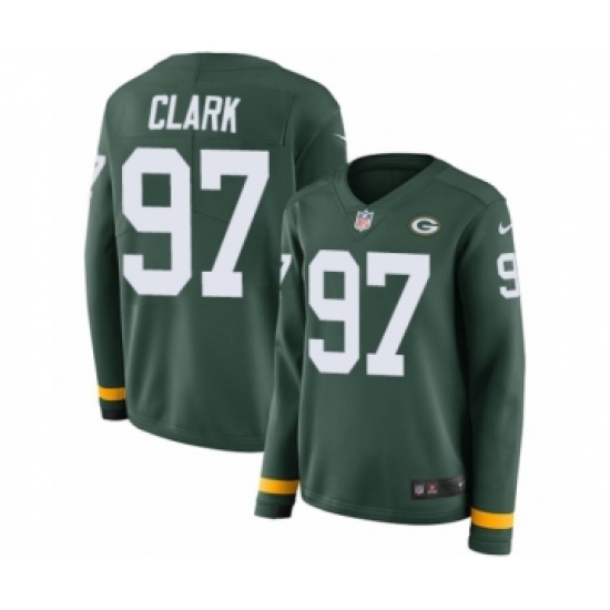 >Women's Nike Green Bay Packers #97 Kenny Clark Limited Green Therma Long Sleeve NFL Jersey