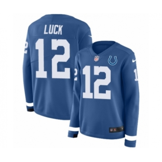 Women's Nike Indianapolis Colts #12 Andrew Luck Limited Blue Therma Long Sleeve NFL Jersey