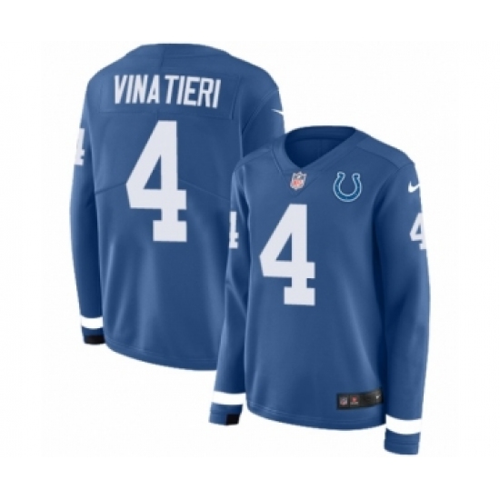 Women's Nike Indianapolis Colts #4 Adam Vinatieri Limited Blue Therma Long Sleeve NFL Jersey