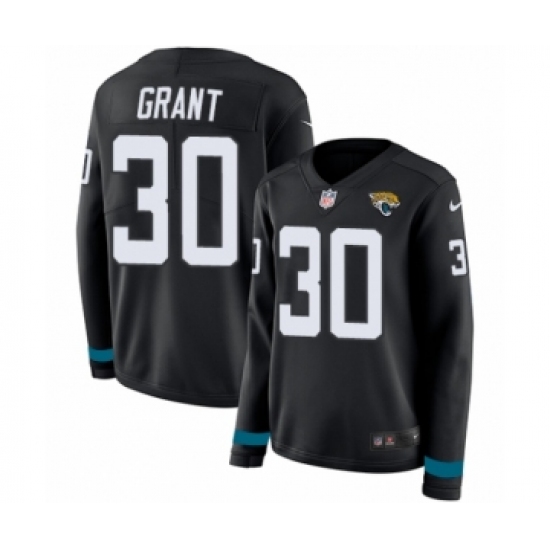 Women's Nike Jacksonville Jaguars #30 Corey Grant Limited Black Therma Long Sleeve NFL Jersey