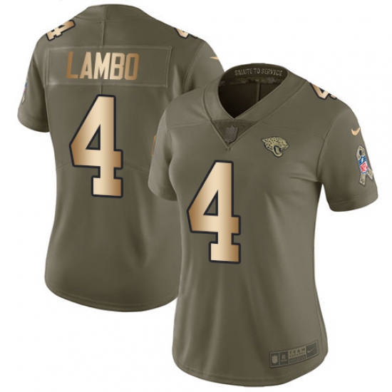 Women's Nike Jacksonville Jaguars #4 Josh Lambo Limited Olive/Gold 2017 Salute to Service NFL Jersey