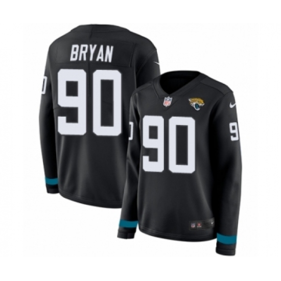 >Women's Nike Jacksonville Jaguars #90 Taven Bryan Limited Black Therma Long Sleeve NFL Jersey