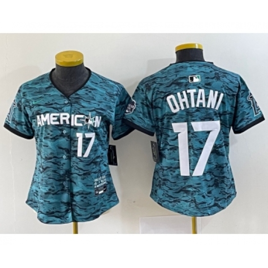 Women's Nike Los Angeles Angels #17 Shohei Ohtani Number Teal 2023 All Star Cool Base Stitched Jersey