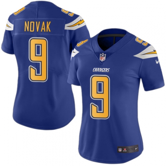 Women's Nike Los Angeles Chargers #9 Nick Novak Limited Electric Blue Rush Vapor Untouchable NFL Jersey