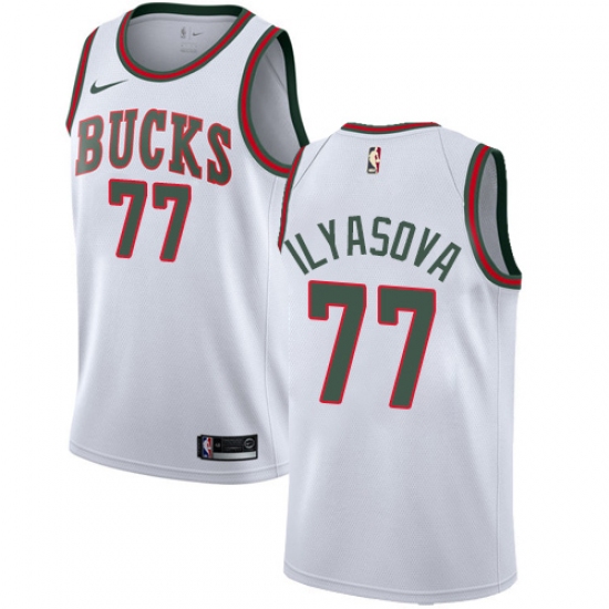 >Women's Nike Milwaukee Bucks #77 Ersan Ilyasova Swingman White Fashion Hardwood Classics NBA Jersey