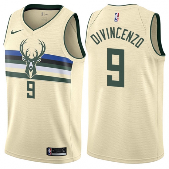 Men's Nike Milwaukee Bucks #9 Donte DiVincenzo Swingman Cream NBA Jersey - City Edition