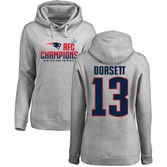 >Women's Nike New England Patriots #13 Phillip Dorsett Heather Gray 2017 AFC Champions Pullover Hoodie