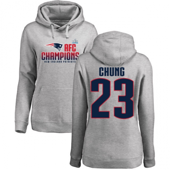 >Women's Nike New England Patriots #23 Patrick Chung Heather Gray 2017 AFC Champions Pullover Hoodie