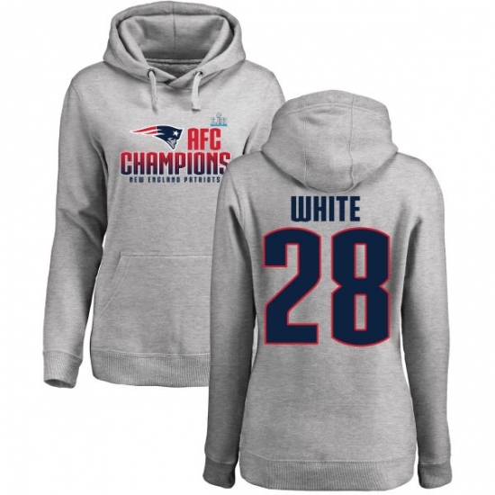>Women's Nike New England Patriots #28 James White Heather Gray 2017 AFC Champions Pullover Hoodie