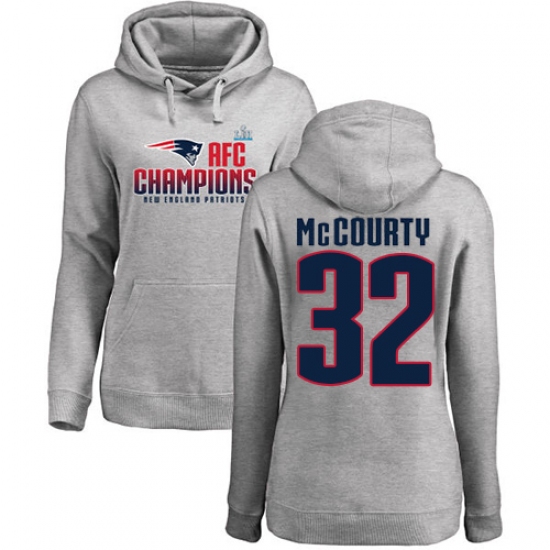 Women's Nike New England Patriots #32 Devin McCourty Heather Gray 2017 AFC Champions Pullover Hoodie