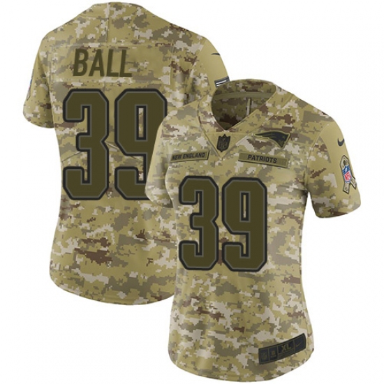 >Women's Nike New England Patriots #39 Montee Ball Limited Camo 2018 Salute to Service NFL Jersey