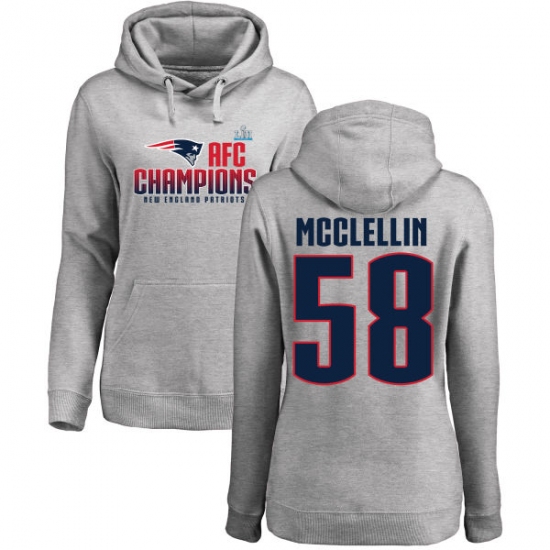 >Women's Nike New England Patriots #58 Shea McClellin Heather Gray 2017 AFC Champions Pullover Hoodie