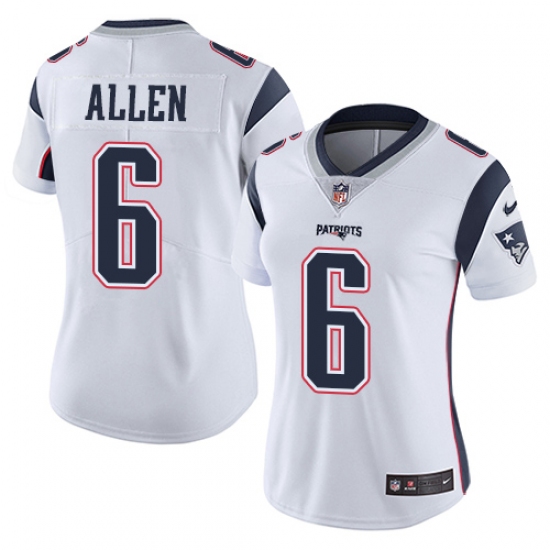 Women's Nike New England Patriots #6 Ryan Allen White Vapor Untouchable Limited Player NFL Jersey