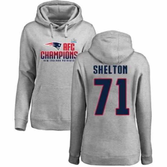 >Women's Nike New England Patriots #71 Danny Shelton Heather Gray 2017 AFC Champions Pullover Hoodie
