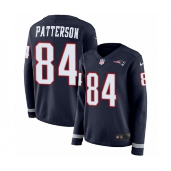 >Women's Nike New England Patriots #84 Cordarrelle Patterson Limited Navy Blue Therma Long Sleeve NFL Jersey