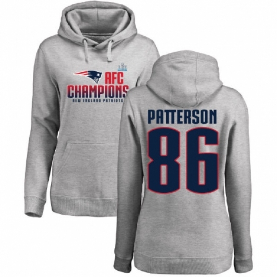 >Women's Nike New England Patriots #86 Cordarrelle Patterson Heather Gray 2017 AFC Champions Pullover Hoodie