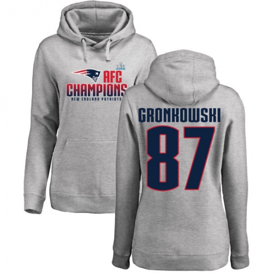 >Women's Nike New England Patriots #87 Rob Gronkowski Heather Gray 2017 AFC Champions Pullover Hoodie