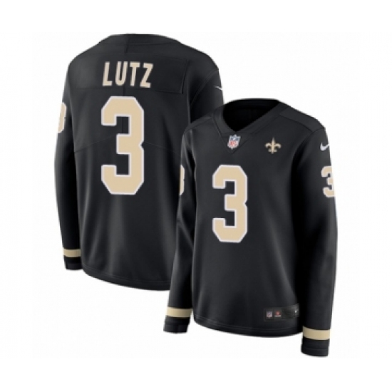 >Women's Nike New Orleans Saints #3 Wil Lutz Limited Black Therma Long Sleeve NFL Jersey
