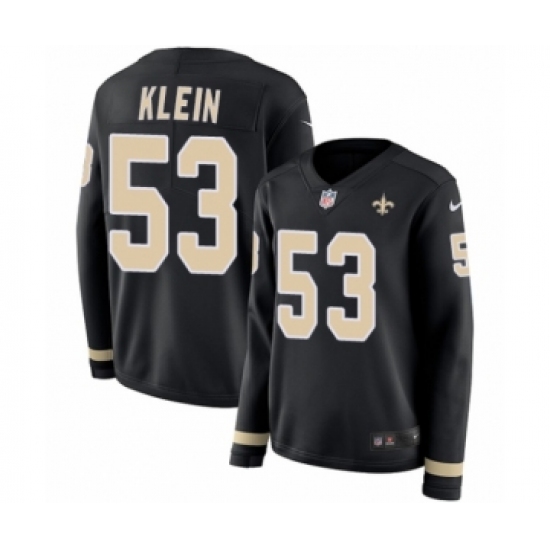 >Women's Nike New Orleans Saints #53 A.J. Klein Limited Black Therma Long Sleeve NFL Jersey