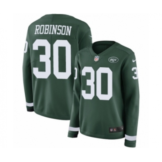 Women's Nike New York Jets #30 Rashard Robinson Limited Green Therma Long Sleeve NFL Jersey
