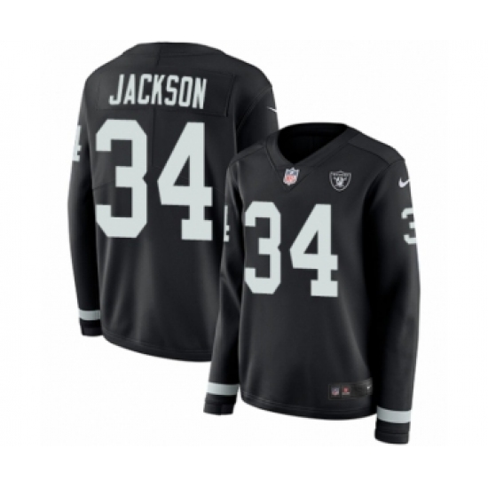 Women's Nike Oakland Raiders #34 Bo Jackson Limited Black Therma Long Sleeve NFL Jersey