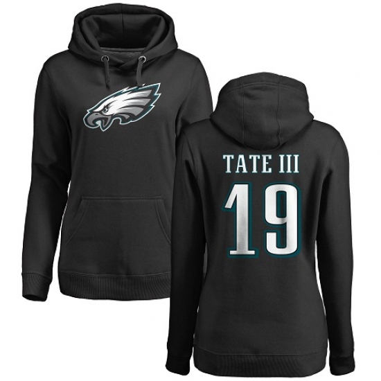 >Women's Nike Philadelphia Eagles #19 Golden Tate III Black Name & Number Logo Pullover Hoodie