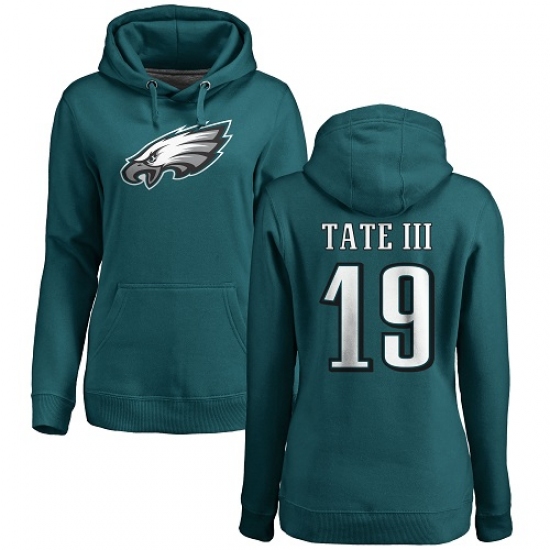 >Women's Nike Philadelphia Eagles #19 Golden Tate III Green Name & Number Logo Pullover Hoodie