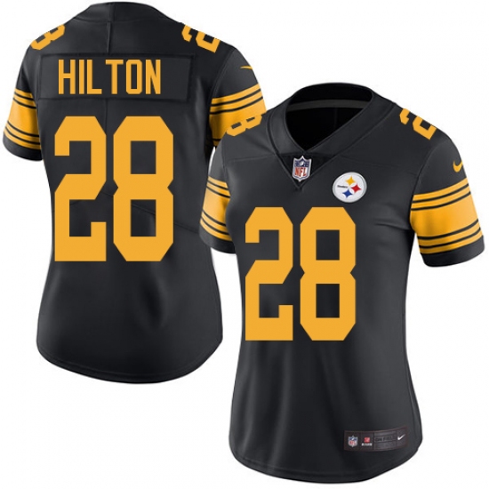 >Women's Nike Pittsburgh Steelers #28 Mike Hilton Limited Black Rush Vapor Untouchable NFL Jersey