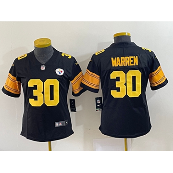 Women's Nike Pittsburgh Steelers #30 Jaylen Warren Black Color Rush Stitched Jersey