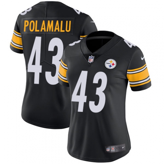 Women's Nike Pittsburgh Steelers #43 Troy Polamalu Black Team Color Vapor Untouchable Limited Player NFL Jersey