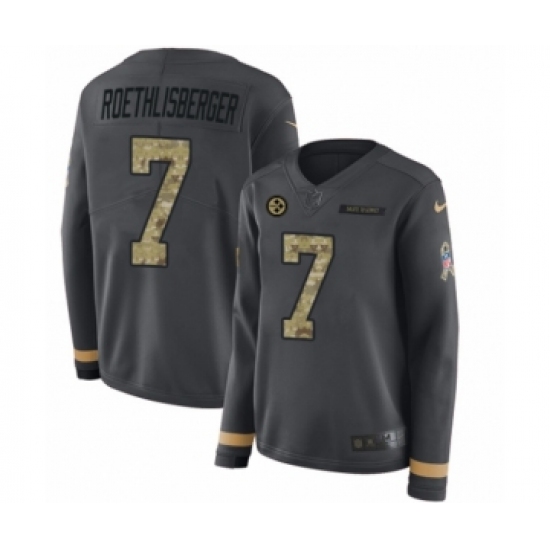 Women's Nike Pittsburgh Steelers #7 Ben Roethlisberger Limited Black Salute to Service Therma Long Sleeve NFL Jersey