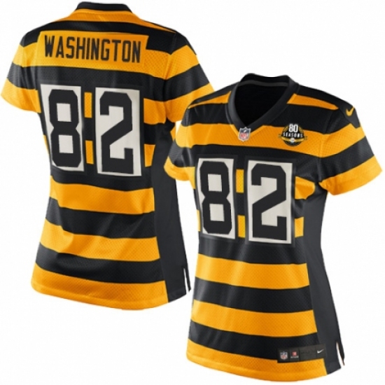 Women's Nike Pittsburgh Steelers #82 James Washington Game Yellow Black Alternate 80TH Anniversary Throwback NFL Jersey
