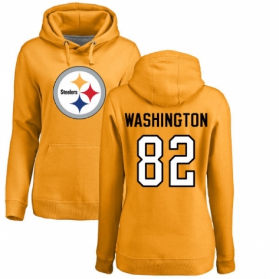 >Women's Nike Pittsburgh Steelers #82 James Washington Gold Name & Number Logo Pullover Hoodie
