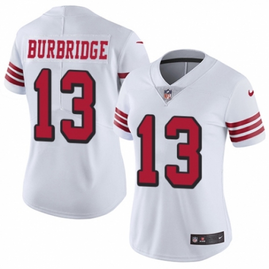 Women's Nike San Francisco 49ers #13 Aaron Burbridge Limited White Rush Vapor Untouchable NFL Jersey