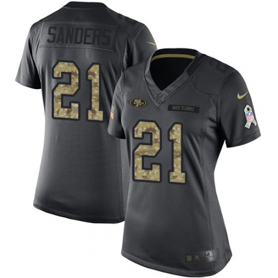 Home>NFL>San Francisco 49ers>Deion Sanders>Women's Nike San Francisco 49ers #21 Deion Sanders Limited Black 2016 Salute to Service NFL Jersey