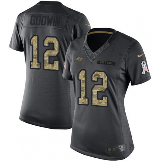 Home>NFL>Tampa Bay Buccaneers>Chris Godwin>Women's Nike Tampa Bay Buccaneers #12 Chris Godwin Limited Black 2016 Salute to Service NFL Jersey